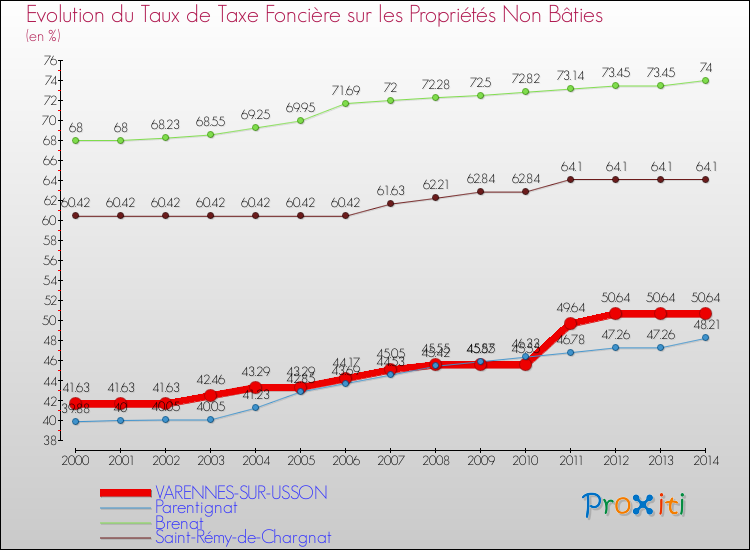 A Varennes-sur-Usson, le taux de taxe foncière sur le non bâti a ainsi augmenté de 21.64 % entre 2000 et 2014.