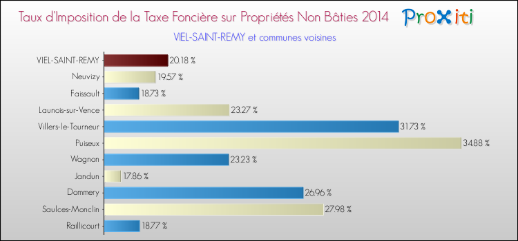 En 2014, le taux de la taxe foncière sur le non bâti vôté par le conseil municipal de Viel-Saint-Remy était de : 20.18 %.