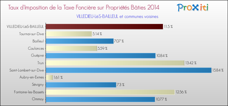 A noter : la valeur moyenne de ce taux de taxe foncière sur le bâti dans les communes françaises similaires à Villedieu-lès-Bailleul était de 13.44 %, en 2014.