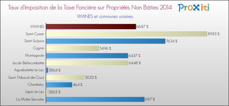 En 2014, le taux de la taxe foncière sur le non bâti vôté par le conseil municipal de Vimines était de : 66.87 %.