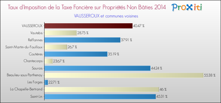 En 2014, le taux de la taxe foncière sur le non bâti vôté par le conseil municipal de Vausseroux était de : 40.47 %.