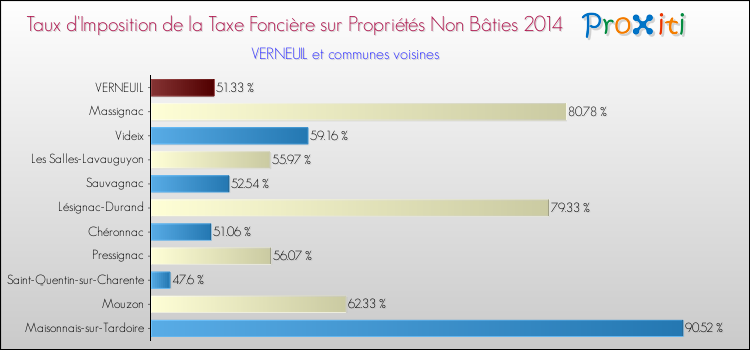 En 2014, le taux de la taxe foncière sur le non bâti vôté par le conseil municipal de Verneuil était de : 51.33 %.