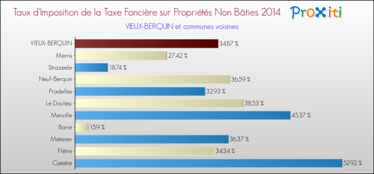 Comparaison des taux d'imposition de la taxe foncière sur les immeubles et terrains non batis 2014 pour VIEUX-BERQUIN et les communes voisines