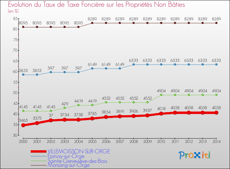 A Villemoisson-sur-Orge, le taux de taxe foncière sur le non bâti a ainsi augmenté de 17.11 % entre 2000 et 2014.