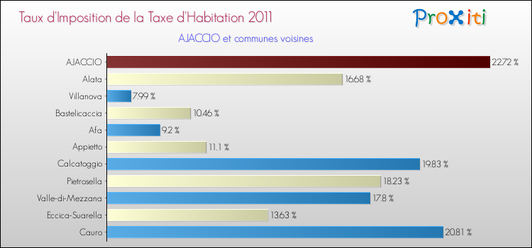 En 2011, le taux de la taxe d'habitation vôté par le conseil municipal de Ajaccio était de : 22.72 %.