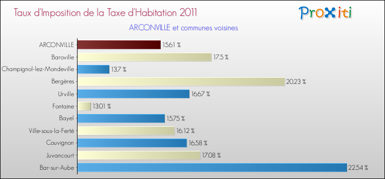 Vous trouverez ci-dessous des graphiques qui vous permettent de situer le taux de la taxe d'habitation de Arconville par rapport aux communes voisines.