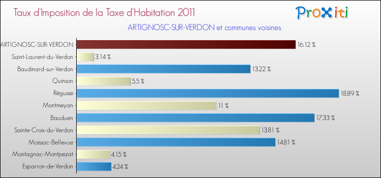 En 2011, le taux de la taxe d'habitation vôté par le conseil municipal de Artignosc-sur-Verdon était de : 16.12 %.