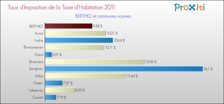En 2011, le taux de la taxe d'habitation vôté par le conseil municipal de Berthez était de : 9.38 %.
