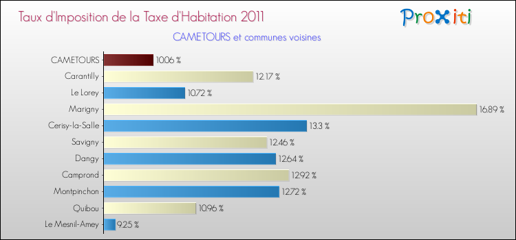 En 2011, le taux de la taxe d'habitation vôté par le conseil municipal de Cametours était de : 10.06 %.