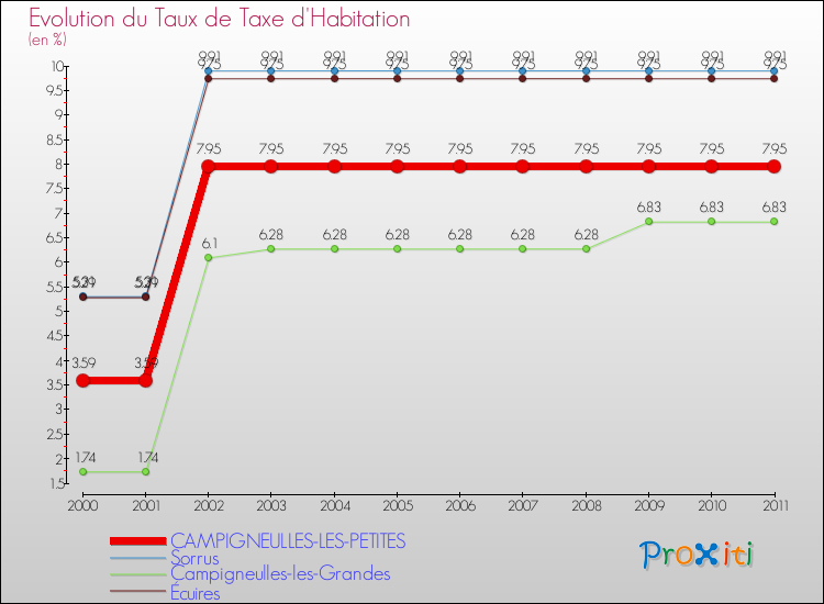 En 2011, le taux de la taxe d'habitation vôté par le conseil municipal de Campigneulles-les-Petites était de : 7.95 %.