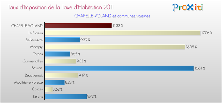 En 2011, le taux de la taxe d'habitation vôté par le conseil municipal de Chapelle-Voland était de : 11.33 %.