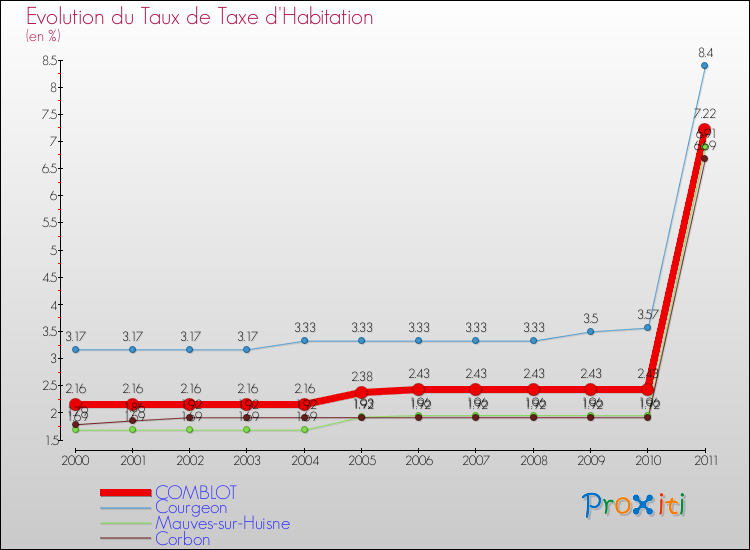 En 2011, le taux de la taxe d'habitation vôté par le conseil municipal de Comblot était de : 7.22 %.