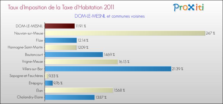 Vous trouverez ci-dessous des graphiques qui vous permettent de situer le taux de la taxe d'habitation de Dom-le-Mesnil par rapport aux communes voisines.