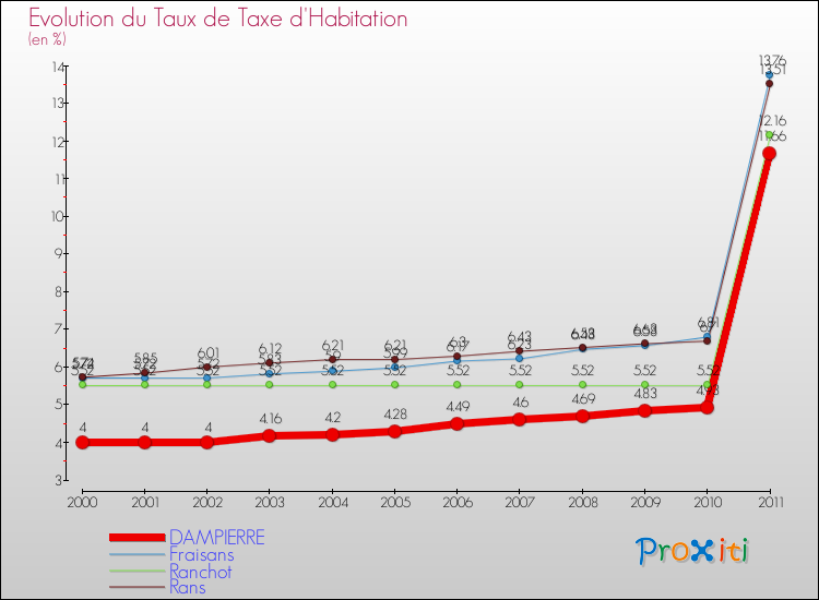 En 2011, à Dampierre, ce taux est en augmentation de 136.51 % par rapport à 2010.