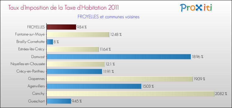 A Froyelles, le taux de la taxe d'habitation est donc plus élevé de 9.94 % que pour des communes similaires.