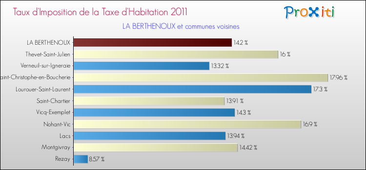 Vous trouverez ci-dessous des graphiques qui vous permettent de situer le taux de la taxe d'habitation de La Berthenoux par rapport aux communes voisines.