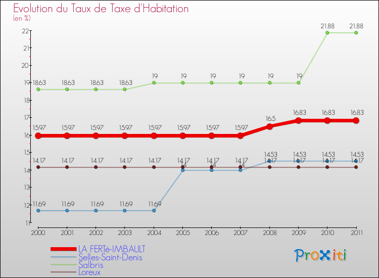 En 2011, le taux de la taxe d'habitation vôté par le conseil municipal de La Ferté-Imbault était de : 16.83 %.