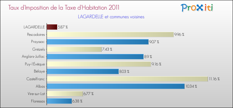 En 2011, le taux de la taxe d'habitation vôté par le conseil municipal de Lagardelle était de : 5.87 %.