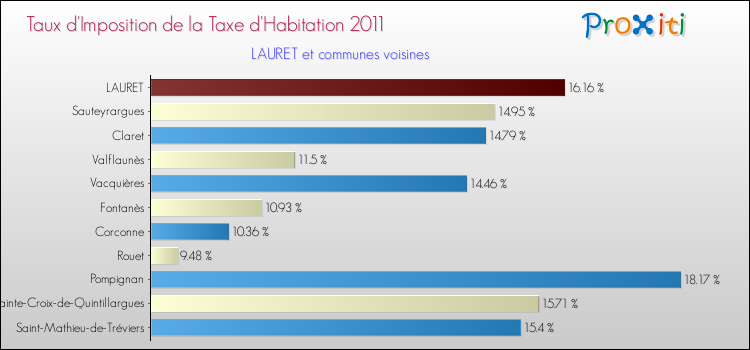 En 2011, le taux de la taxe d'habitation vôté par le conseil municipal de Lauret était de : 16.16 %.