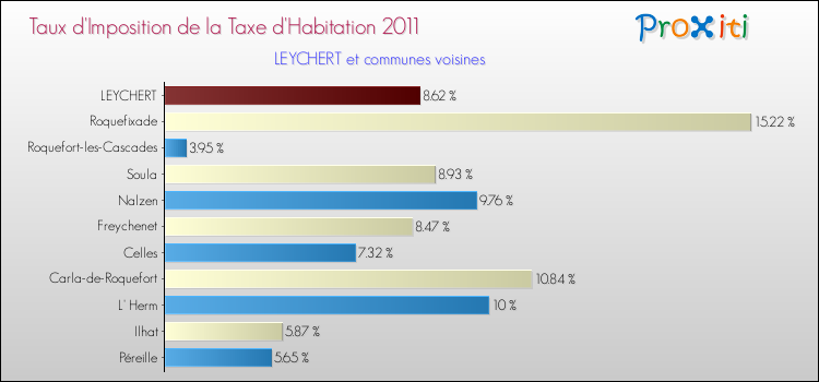 Vous trouverez ci-dessous des graphiques qui vous permettent de situer le taux de la taxe d'habitation de Leychert par rapport aux communes voisines.