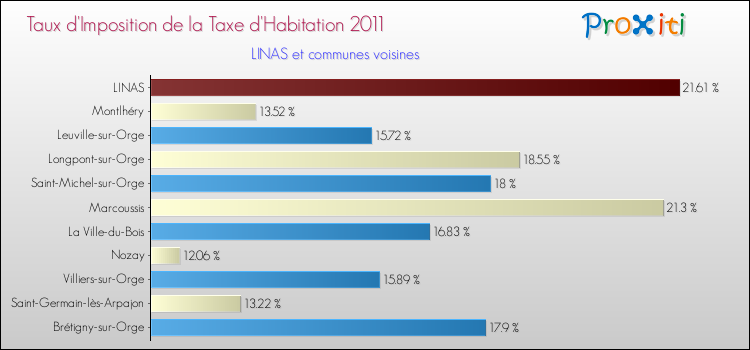 En 2011, le taux de la taxe d'habitation vôté par le conseil municipal de Linas était de : 21.61 %.