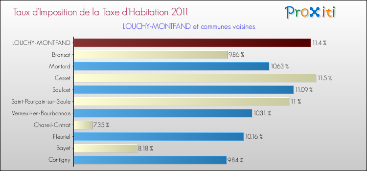 En 2011, le taux de la taxe d'habitation vôté par le conseil municipal de Louchy-Montfand était de : 11.4 %.