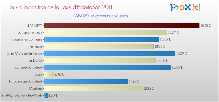 En 2011, le taux de la taxe d'habitation vôté par le conseil municipal de Landivy était de : 18.48 %.