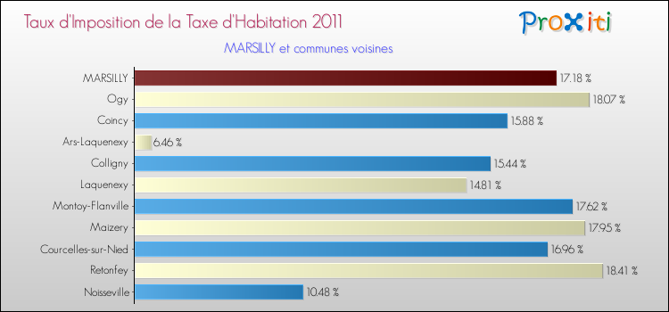 En 2011, le taux de la taxe d'habitation vôté par le conseil municipal de Marsilly était de : 17.18 %.