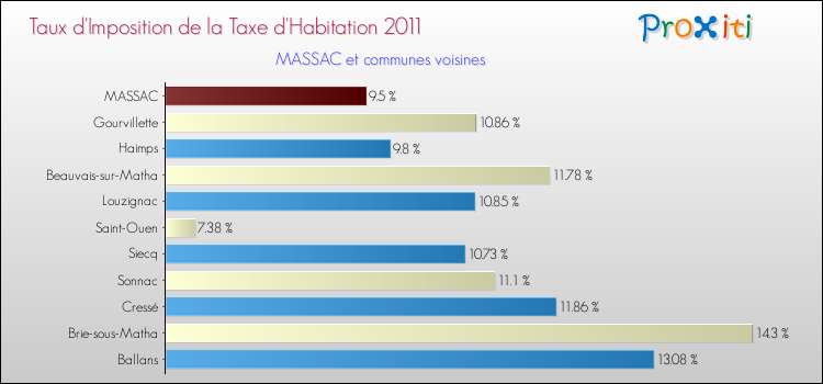 Vous trouverez ci-dessous des graphiques qui vous permettent de situer le taux de la taxe d'habitation de Massac par rapport aux communes voisines.