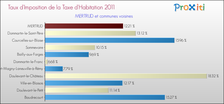 Vous trouverez ci-dessous des graphiques qui vous permettent de situer le taux de la taxe d'habitation de Mertrud par rapport aux communes voisines.
