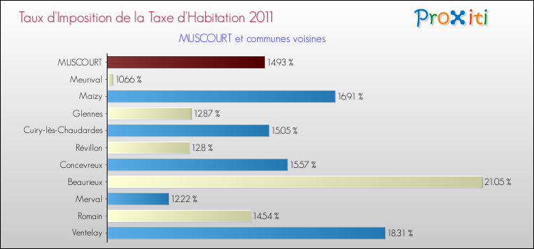 En 2011, le taux de la taxe d'habitation vôté par le conseil municipal de Muscourt était de : 14.93 %.