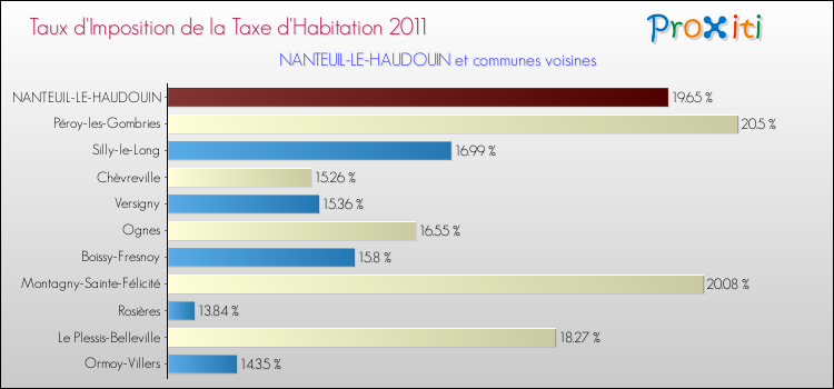Vous trouverez ci-dessous des graphiques qui vous permettent de situer le taux de la taxe d'habitation de Nanteuil-le-Haudouin par rapport aux communes voisines.