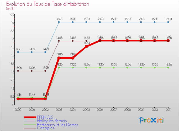 En 2011, le taux de la taxe d'habitation vôté par le conseil municipal de Pernois était de : 14.9 %.