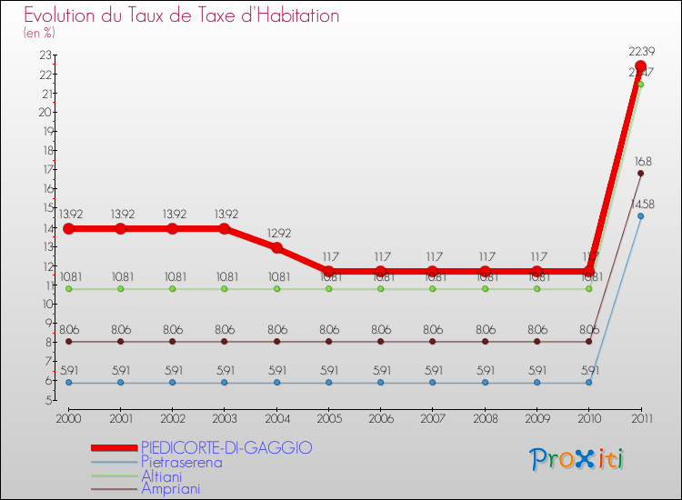 Le graphique ci dessous représente l'évolution du taux de la taxe d'habitation à Piedicorte-di-Gaggio depuis 2000.