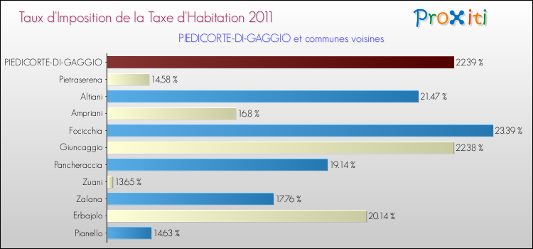A Piedicorte-di-Gaggio, le taux de la taxe d'habitation est donc plus élevé de 23.84 % que pour des communes similaires.