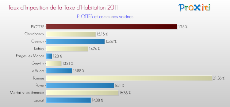 Vous trouverez ci-dessous des graphiques qui vous permettent de situer le taux de la taxe d'habitation de Plottes par rapport aux communes voisines.