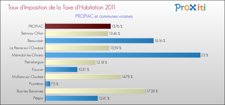 En 2011, le taux de la taxe d'habitation vôté par le conseil municipal de Propiac était de : 13.76 %.