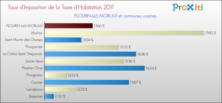 A Plourin-lès-Morlaix, le taux de la taxe d'habitation est donc plus élevé de 0.81 % que pour des communes similaires.