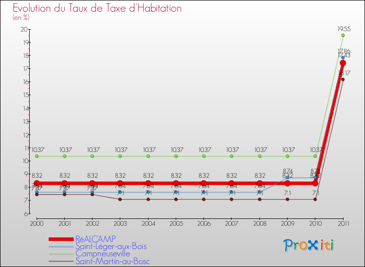 A Réalcamp, le taux de la taxe d'habitation est donc plus élevé de 11.23 % que pour des communes similaires.
