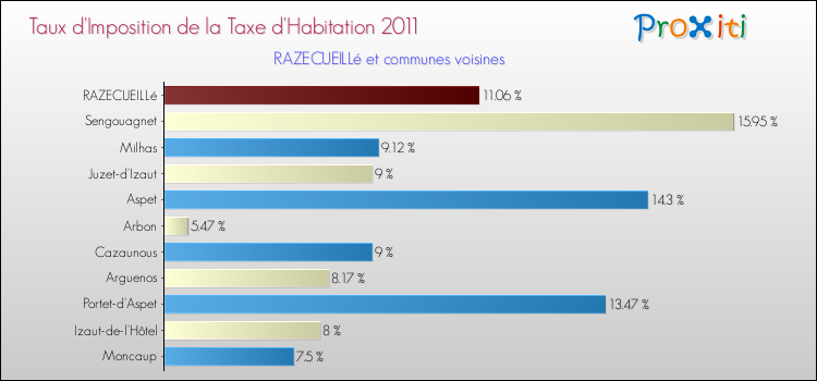 En 2011, le taux de la taxe d'habitation vôté par le conseil municipal de Razecueillé était de : 11.06 %.