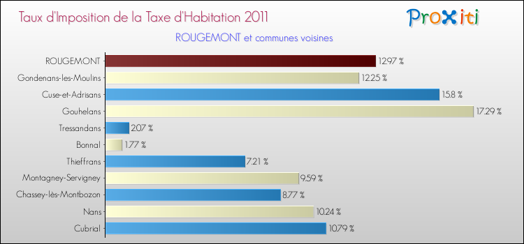 En 2011, le taux de la taxe d'habitation vôté par le conseil municipal de Rougemont était de : 12.97 %.