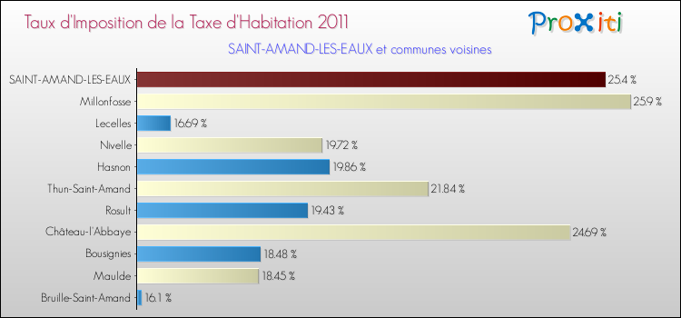 Vous trouverez ci-dessous des graphiques qui vous permettent de situer le taux de la taxe d'habitation de Saint-Amand-les-Eaux par rapport aux communes voisines.