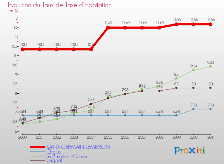 En 2011, le taux de la taxe d'habitation vôté par le conseil municipal de Saint-Germain-Lembron était de : 11.66 %.
