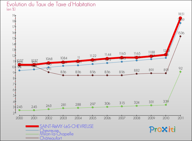 En 2011, le taux de la taxe d'habitation vôté par le conseil municipal de Saint-Rémy-lès-Chevreuse était de : 18.51 %.