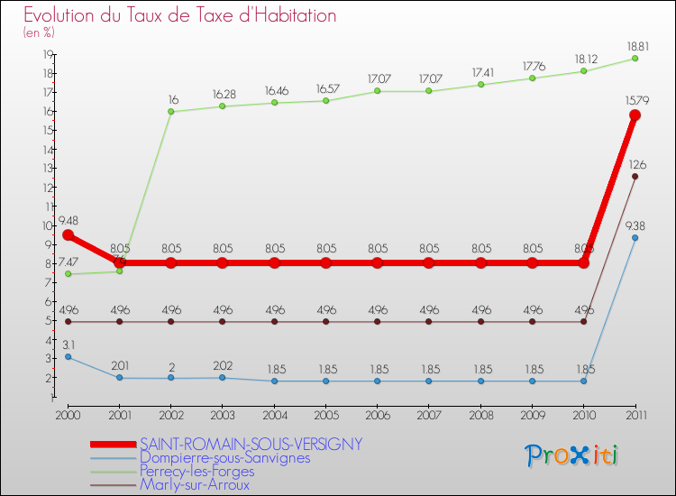 A Saint-Romain-sous-Versigny, le taux de la taxe d'habitation est donc plus élevé de 18.63 % que pour des communes similaires.