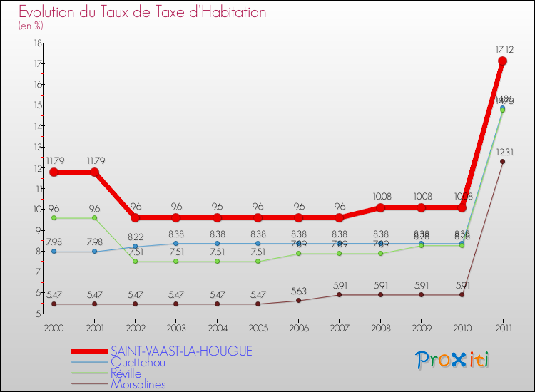 Le graphique ci dessous représente l'évolution du taux de la taxe d'habitation à Saint-Vaast-la-Hougue depuis 2000.