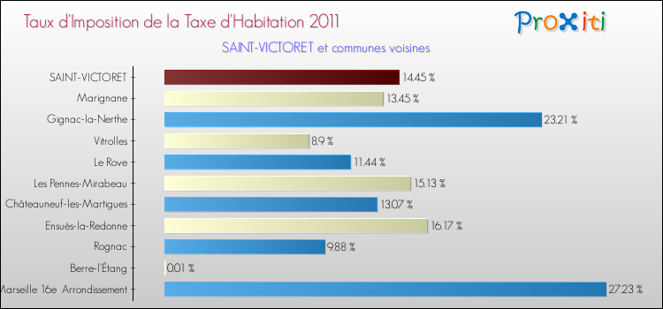 A Saint-Victoret, le taux de la taxe d'habitation est donc plus élevé de 0.84 % que pour des communes similaires.