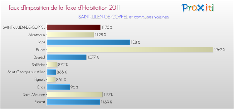 A Saint-Julien-de-Coppel, le taux de la taxe d'habitation est donc plus élevé de 3.52 % que pour des communes similaires.