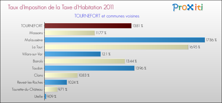 Vous trouverez ci-dessous des graphiques qui vous permettent de situer le taux de la taxe d'habitation de Tournefort par rapport aux communes voisines.