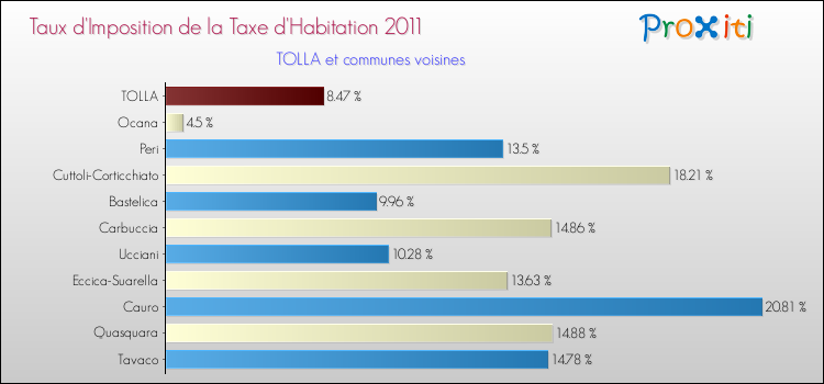 Vous trouverez ci-dessous des graphiques qui vous permettent de situer le taux de la taxe d'habitation de Tolla par rapport aux communes voisines.